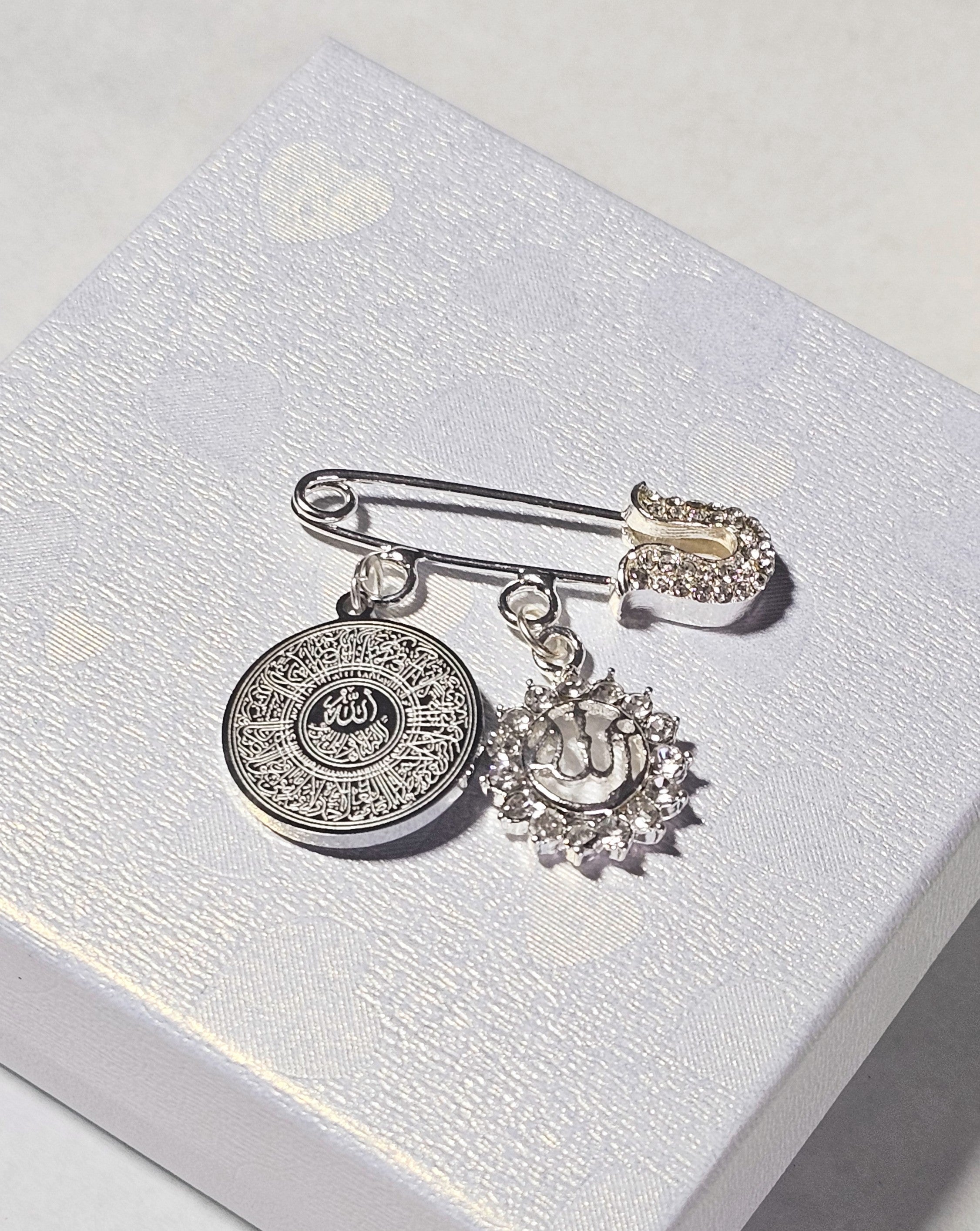 Baby pin with Ayatul Kursi in Pearl Silver